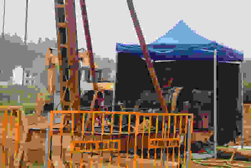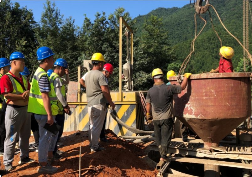 該標(biāo)段位于贛皖界江西一側(cè),全長9.86公里,主要工程有隧道2座,橋梁6座,互通一座及部分路基。橋梁總延長4560.6米,樁基298根,樁基總延長8168.1米,最深樁基達(dá)39米,墩柱最高達(dá)48.52米。其中跨徑60米的南山路特大橋、鳳山水特大橋均為國內(nèi)最大跨徑的π型鋼混組合梁,也是全線重難點工程。樁基施工中,受山勢影響和環(huán)水保要求,部分樁基鉆機(jī)無法抵達(dá)樁基施工平臺,只能采取人工挖孔。為確保施工安全,項目部根據(jù)現(xiàn)場實際,先后自研了“可移動組合式泥漿自動循環(huán)箱”、“樁基井口安全防護(hù)鋼護(hù)筒”、“樁孔內(nèi)部折疊式安全防護(hù)板”等“安全微創(chuàng)新”,有效保證了環(huán)水保落實,使施工中泥漿不外流、不污染及人員多層安全保護(hù)屏障,有效解決了人工挖孔樁的施工安全防護(hù)問題。