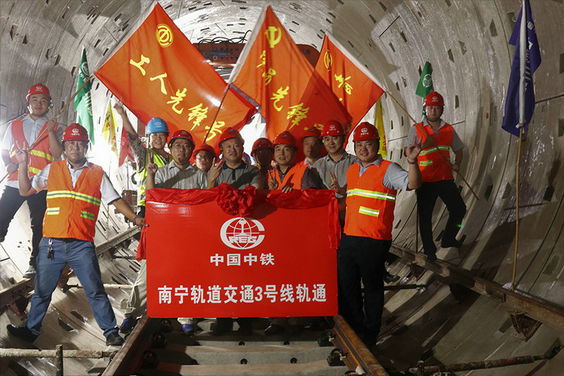 南寧市軌道交通集團建設(shè)分公司總經(jīng)理王炳華、副總經(jīng)理莫志剛,中國中鐵股份有限公司南寧軌道交通3號線02標(biāo)工程指揮部常務(wù)副總指揮長劉進(jìn)友、總工程師艾厚軍、副總指揮長錢建勛等領(lǐng)導(dǎo)參加了軌通儀式。