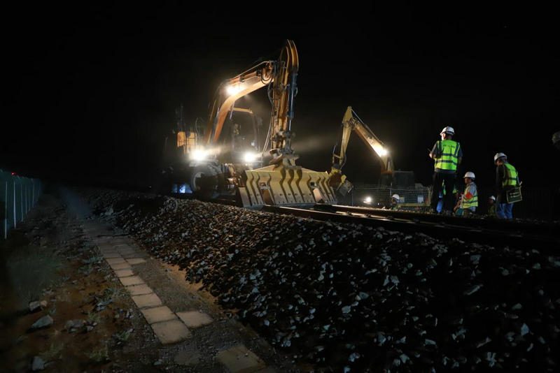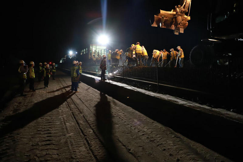 7月20日凌晨,在閃耀的火花中,中鐵二十一局烏將鐵路擴能改造S2標(biāo)“抽換電容枕、無縫線路切割、安裝絕緣”、“途卸長鋼軌”、“移設(shè)既有13號道岔”三個天窗點同時施工,并圓滿完成施工任務(wù)。