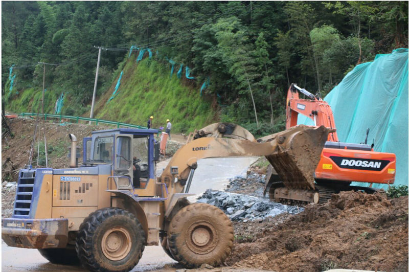 當(dāng)天晚上,接到地方政府和項(xiàng)目辦防臺風(fēng)暴雨緊急通知后,項(xiàng)目負(fù)責(zé)人李蕓立即組織布防工作,指派班子成員分頭負(fù)責(zé)重點(diǎn)防御工點(diǎn)。并成立了由項(xiàng)目負(fù)責(zé)人為組長、副經(jīng)理、總工程師、安全總監(jiān)及各部門負(fù)責(zé)人為組員的防災(zāi)救災(zāi)領(lǐng)導(dǎo)小組。按照分工,班子成員帶領(lǐng)各部室負(fù)責(zé)人迅速趕往南山路特大橋、鳳山水特大橋、篁村大橋、T梁場、鋼混組合梁場、水穩(wěn)站、瀝青站、鋼構(gòu)廠、月嶺隧道、沱川隧道等施工現(xiàn)場,對員工宿舍、施工廠房、各類大棚進(jìn)行檢查,提前做好防風(fēng)加固、防洪排水、溝渠疏浚、涵洞疏通和河道清理工作。