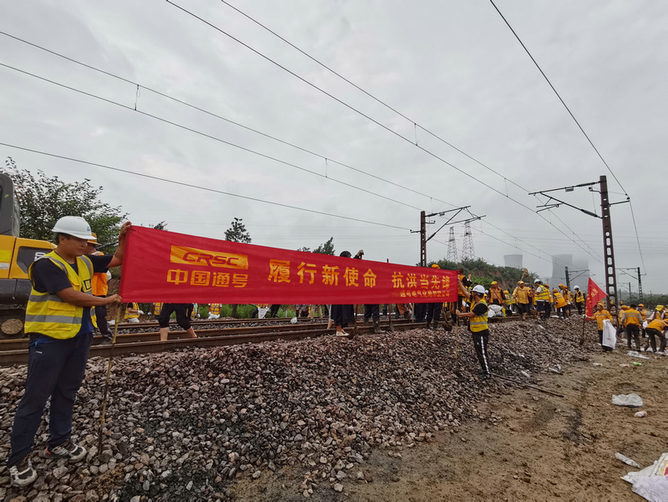 7月22日-28日,在特大暴雨造成嚴(yán)重城市內(nèi)澇,隴海鐵路、瓦日鐵路行車(chē)受阻后,在通號(hào)電氣化局集中統(tǒng)一部署下,鄭鐵公司黨委迅速響應(yīng),成立并派出多支救援搶險(xiǎn)力量,積極投入隴海鐵路搶修工作中。