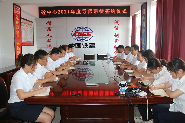 2021年7月27日上午,中鐵十一局二公司混凝土拌合站管理中心在中心會(huì)議室舉行2021年新員工導(dǎo)師帶徒簽約儀式,通過“二對(duì)一”雙導(dǎo)師帶徒,幫助青年員工開通成長(zhǎng)成才“快車道”。