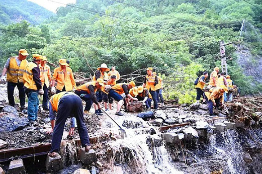 侯月線(xiàn)交通不便,設(shè)備分散,杜建華和他的工友們沒(méi)有喊過(guò)苦和累。他們始終保持軍人本色,聽(tīng)黨指揮。杜建華天不亮就起床,點(diǎn)名、列隊(duì),然后以小組為單位沿著綿延的侯月線(xiàn)穿行在大山之中,一年四季,風(fēng)雨無(wú)阻。哪里的屋面裂縫了,哪里的圍墻傾斜了,哪里的電線(xiàn)老化了……都需要他們仔細(xì)檢查、準(zhǔn)確判斷。他們像呵護(hù)孩子一樣關(guān)注這些鐵路房建設(shè)備的一磚一瓦。不放過(guò)、不漏檢、不停歇;工具包常背著,梯具??钢杉Z和水常帶著。