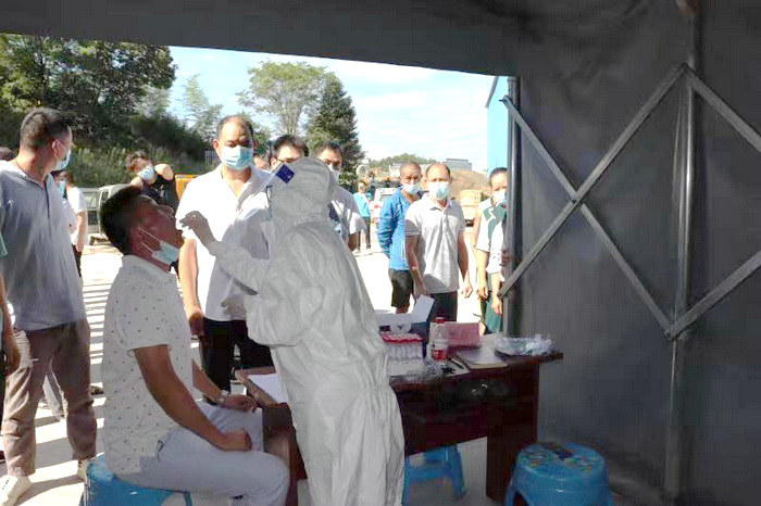 圖為醫(yī)護(hù)人員正進(jìn)行核酸檢測