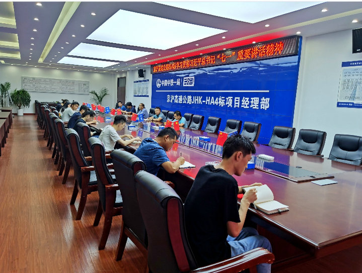 7月31日,京滬高速公路HA4標(biāo)項(xiàng)目部深入學(xué)習(xí)貫徹習(xí)近平總書(shū)記“七一”重要講話(huà)精神,圍繞弘揚(yáng)偉大建黨精神開(kāi)展專(zhuān)題研討。