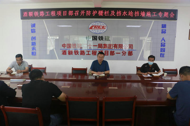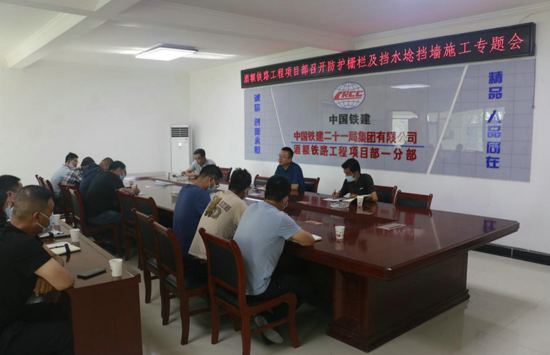 8月14日,中鐵二十一局四公司酒額鐵路工程項目部召開路基防護柵欄及三奇堡挖方段擋水埝擋墻施工專題會,項目部領(lǐng)導(dǎo)班子、項目部各部門負(fù)責(zé)人、各工區(qū)領(lǐng)導(dǎo)班子及各工區(qū)施工隊負(fù)責(zé)人參加了會議。