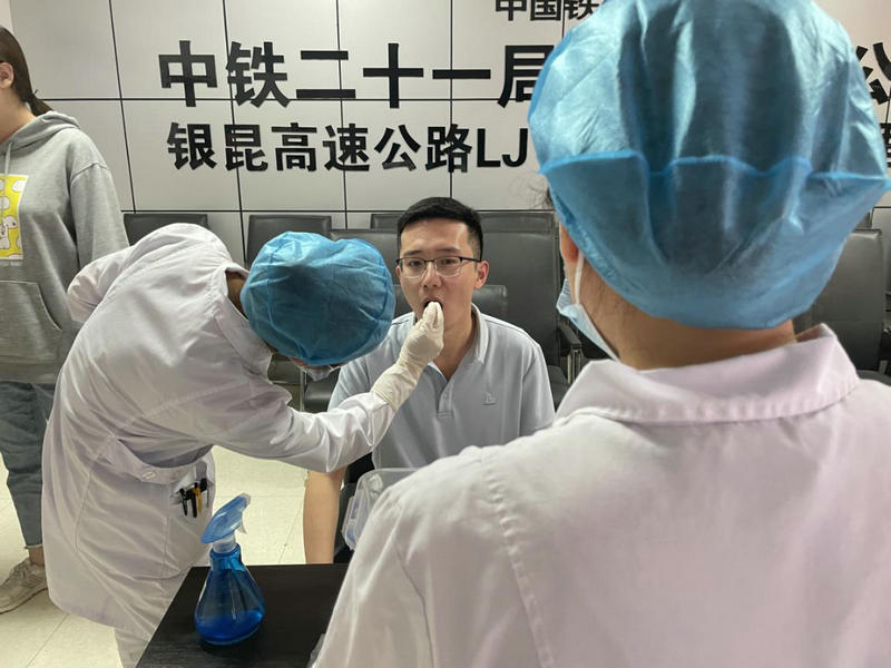 為保證項目安全生產(chǎn)有序進行,8月17日,中鐵二十一局銀昆高速公路項目經(jīng)理部組織全體參建職工開展核酸檢測工作。