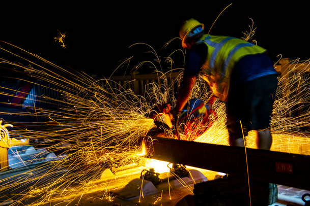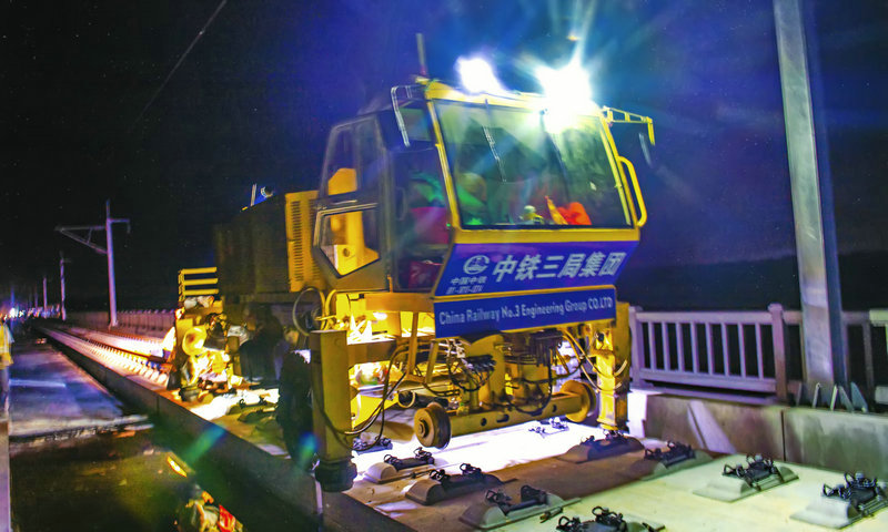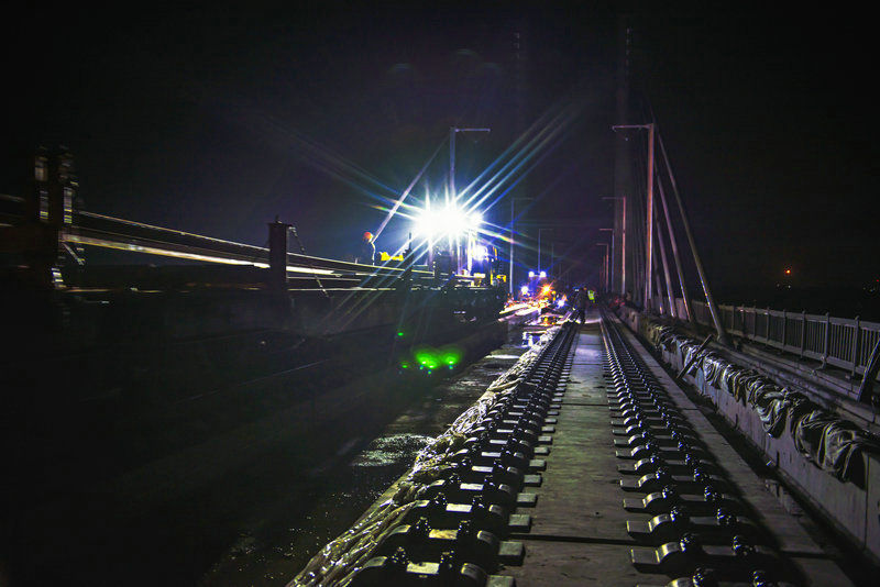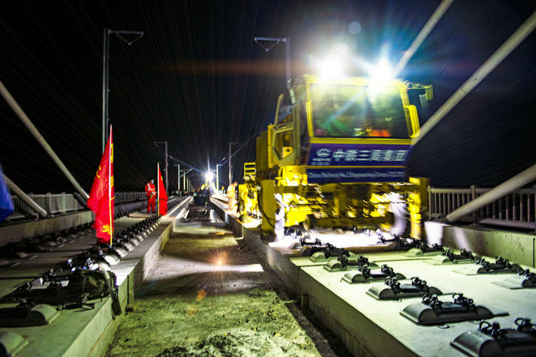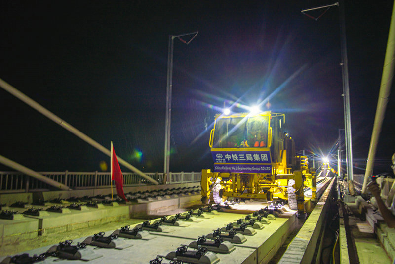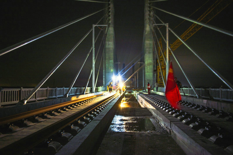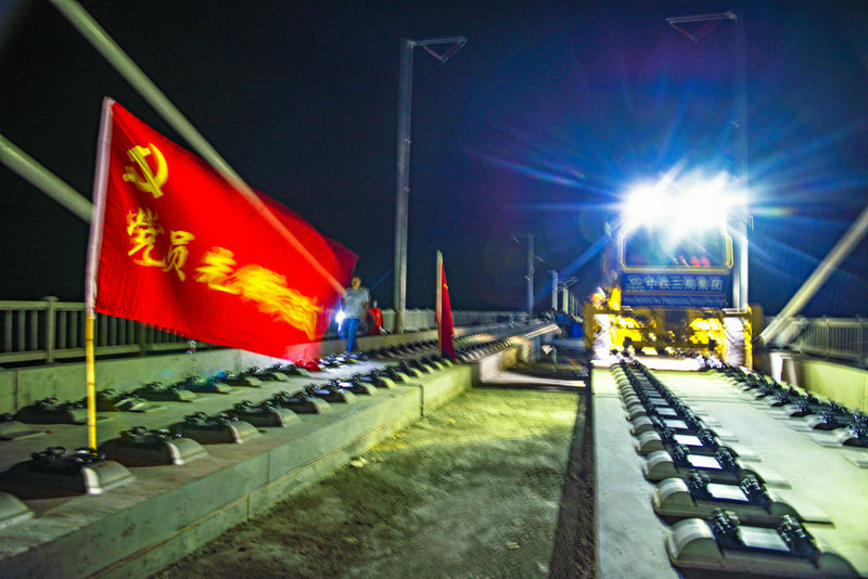 黃黃高鐵鋪軌夜戰(zhàn)巴河特大橋