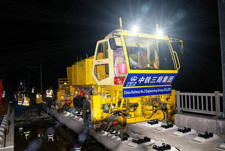 湖北黃岡訊 8月27日凌晨3時(shí)許,隨著WZ-500型長(zhǎng)鋼軌鋪設(shè)牽引車將兩根500米長(zhǎng)鋼軌緩緩?fù)铣霾⒎€(wěn)穩(wěn)落入里程DK9+289無(wú)砟道床承軌槽內(nèi),標(biāo)志著由中鐵三局線橋公司承擔(dān)鋪軌任務(wù)的黃黃高鐵右線鋪軌順利通過(guò)全線重點(diǎn)控制性工程之一的巴河特大橋,繼續(xù)向著終點(diǎn)黃岡東站推進(jìn),這意味著黃黃高鐵年底通車勝利在望。