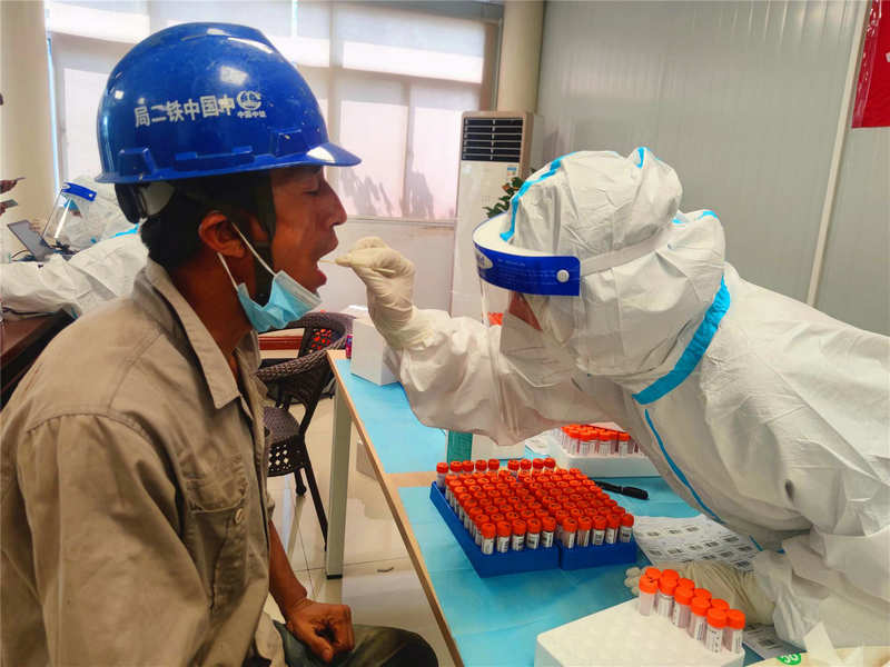 在此期間,312項(xiàng)目部對工地進(jìn)行封閉式管理,要求工地人員不得離開工地,同時(shí)近階段不再新進(jìn)人員,所有進(jìn)出工地人員要嚴(yán)格檢查健康碼,進(jìn)行體溫檢測;要求全程佩戴口罩,減少非必要接觸;認(rèn)真排查最近經(jīng)過高風(fēng)險(xiǎn)地區(qū)的人員,并安排項(xiàng)目390余名人員進(jìn)行核酸檢測,為了不影響施工進(jìn)度,核酸檢測為分批次、分時(shí)段進(jìn)行。