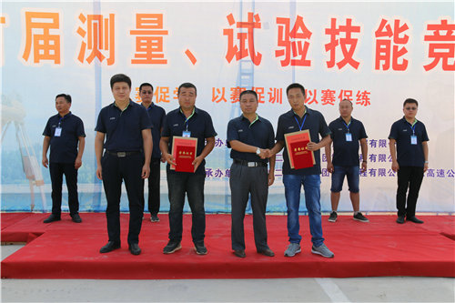 比賽中,每位參賽選手都將自己在平時積累下來的技術(shù)知識運用到了實處,展現(xiàn)了積極應(yīng)對、嫻熟操作的優(yōu)良素質(zhì)以及賽友誼、賽風(fēng)格、賽技能的精神風(fēng)貌。經(jīng)過激烈的角逐,安慈高速公路項目部技術(shù)主管李健獲得測量組一等獎;黔張常項目部測量隊長孟燦獲得測量組二等獎;昌贛項目部測量副隊長潘官忠獲得測量組三等獎;昌贛項目試驗員湯文獲得試驗組一等獎;銀西高鐵項目試驗員姜攀獲得試驗組二等獎,安慈高速項目部檢測員高世常獲得試驗組三等獎,對以上獲得獎勵的同志頒發(fā)榮譽證書及獎金。