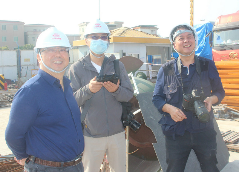 王荃荃(右1)陪同新華社廣東分社記者劉大偉(右2)到現(xiàn)場采訪