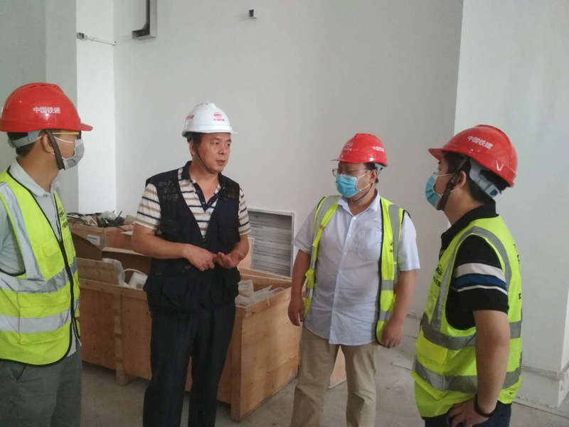 王荃荃(左1)向五工區(qū)經(jīng)理何佳雷征求黨建工作如何與施工生產(chǎn)深度融合意見