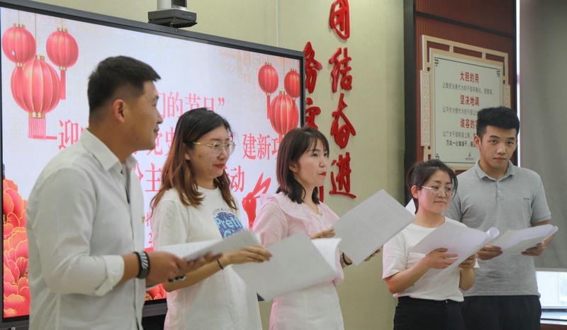 圖:員工誦讀百年黨史順口溜