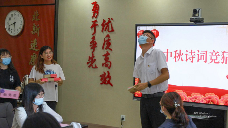活動以北新投資公司工會慰問開頭,以生動有趣的送中秋盲盒視頻為呼應,通過員工自制有故事、有內(nèi)涵的中秋盲盒,把工會的溫暖送到員工心坎上。中秋詩會融入抽獎環(huán)節(jié),開展中秋詩詞吟詠競猜,基于中華民族自古以來對中秋家庭團圓的追求,激發(fā)情感共鳴。黨史百句順口溜,六名黨員打竹板娓娓道來,對百年黨史進行動情的表達、呼喚與抒發(fā)。中秋彩泥手工制作,員工們自己動手,用彩泥制作了栩栩如生的彩兔、月餅等手工制品?;顒又校€進行了全體員工中秋節(jié)前廉潔教育,簽訂廉潔中秋承諾書。