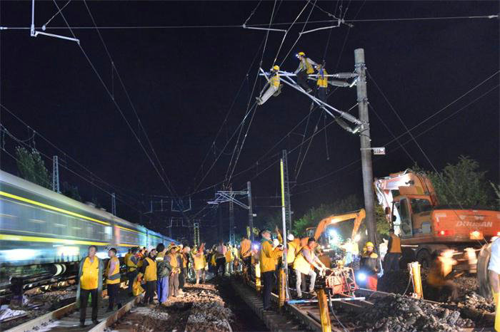當(dāng)日凌晨2時(shí),隨著一聲令下,作業(yè)人員迅速進(jìn)入既定崗位,扒道砟聲、切割軌道聲、抬鋼軌的號(hào)子聲、機(jī)器轟鳴聲此起彼伏,整個(gè)施工現(xiàn)場(chǎng)忙而不亂,紛繁有序,現(xiàn)場(chǎng)一片熱火朝天。經(jīng)過(guò)1個(gè)小時(shí)緊張施工拆除9#、11#道岔。凌晨3時(shí)破底。凌晨3時(shí)40分道岔、軌排就位,連通線路。凌晨4時(shí)20分開(kāi)始上碴、起道、搗固,凌晨6時(shí)10分完成作業(yè),順利完工開(kāi)通。
