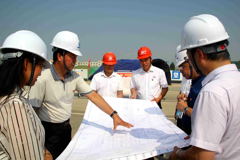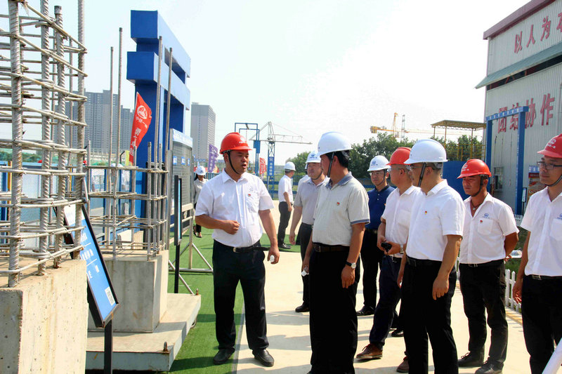 啟動儀式結束后,屈占權處長一行和建安公司參會領導深入施工現(xiàn)場進行經(jīng)驗交流,同時,對項目安全質量體驗園區(qū)、創(chuàng)新園區(qū)、VR體驗館及分部展板進行觀看,并詳細詢問了解施工生產(chǎn)情況,對施工質量、進度、安全、環(huán)保方面都予以肯定和認可。