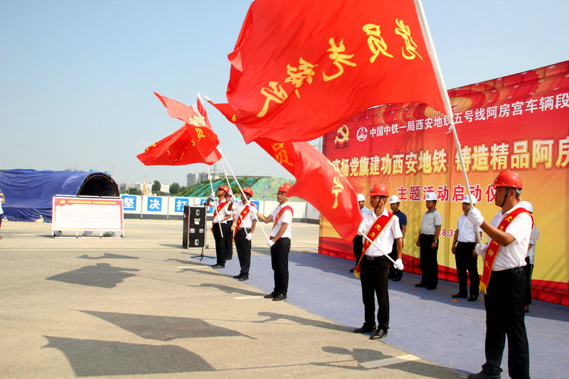 8月31日下午15時,中鐵一局建安公司黨委在西安地鐵五號線項目部舉行“高揚黨旗建工西安地鐵 鑄造精品阿房宮車輛段”主題活動啟動儀式。