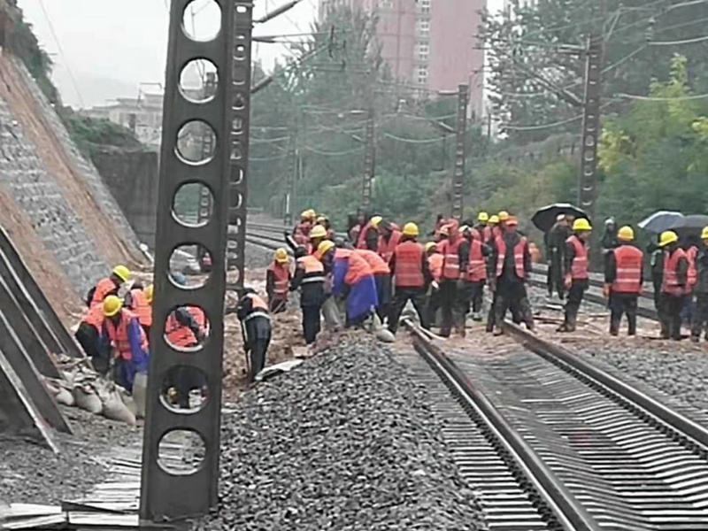 當(dāng)天下午兩點(diǎn)左右,項(xiàng)目部接到綏德工電段請(qǐng)求支援電話,項(xiàng)目副經(jīng)理王兵帶隊(duì)抽調(diào)施工人員25人、備齊運(yùn)輸工具及部分搶險(xiǎn)物資趕赴現(xiàn)場進(jìn)行搶險(xiǎn)工作,在包西鐵路K564+200處,因強(qiáng)降雨造成線路下沉,人工運(yùn)渣起道,搶險(xiǎn)工作一直持續(xù)到6日凌晨3:30結(jié)束。