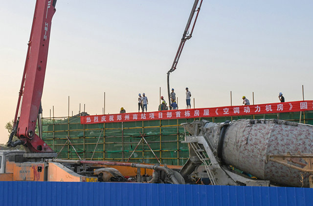 9月3日,由中鐵七局五公司承建的鄭州南站項(xiàng)目首棟房屋工程空調(diào)動(dòng)力機(jī)房順利封頂。