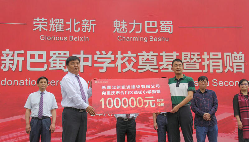 2010年6月,北新投資公司合川草街示范園項目順利開工,開工儀式上將40余萬元捐贈給了當(dāng)?shù)匦W(xué)和敬老院。在建設(shè)項目的同時,公司連續(xù)多年對合川草街當(dāng)?shù)匦W(xué)的困難兒童進行捐資捐物,幫他們度過難關(guān)。2011年9月,所屬重慶蘊豐建設(shè)公司毅然號召公司高管一對一向合川草街小學(xué)的10名留守兒童每人捐贈1000元,并承諾負擔(dān)10名孩子就讀小學(xué)的一切費用。2017年6月16日,在重慶北新巴蜀中學(xué)奠基儀式上,北新投資公司再向重慶市合川區(qū)草街小學(xué)捐贈價值十萬元的教學(xué)設(shè)施,為促進區(qū)域教育產(chǎn)業(yè)提速升級和社會經(jīng)濟繁榮發(fā)展貢獻力量。