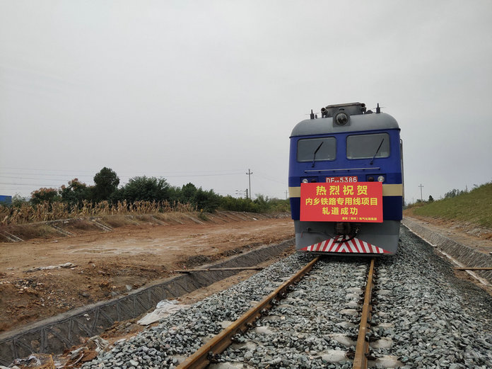 東風(fēng)8B機(jī)車緩緩駛來,行走在內(nèi)鄉(xiāng)鐵路專用線的軌道上,在歷經(jīng)2天的要點(diǎn)作業(yè)后,圓滿完成了全長(zhǎng)6.056公里線路的軋道作業(yè),這也標(biāo)志著內(nèi)鄉(xiāng)鐵路專用線項(xiàng)目已具備列車運(yùn)行條件。