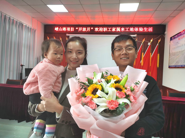 圖為幸福的一家 峨山路項(xiàng)目黨支部也將此項(xiàng)活動(dòng)納入到“我為群眾辦實(shí)事”中去,讓員工家屬百忙之中到項(xiàng)目來(lái)走一走、看一看,既解決了員工的思鄉(xiāng)之情,也讓家屬切身感受到員工的工作和生活氛圍,從而更加理解員工的辛苦,也使項(xiàng)目“家”文化得以弘揚(yáng)和傳播。