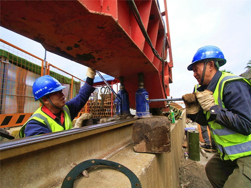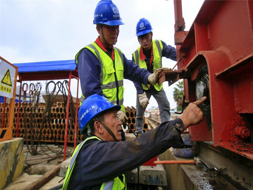 但今年項(xiàng)目復(fù)工生產(chǎn)以來,漆成平所帶領(lǐng)的機(jī)械加工班,從來沒有叫苦叫累。期間,無論刮風(fēng)下雨、白天黑夜,亦或是鉆到洞子,爬上十幾米高的門吊,他們總是奔走在急難險(xiǎn)重的施工線上,而他們也總是不負(fù)眾望,屢挑重?fù)?dān)。