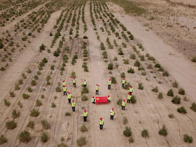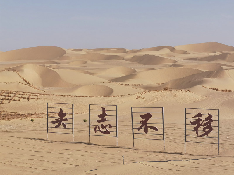 幾年來,建設者在沿線共修建草方格近5000萬平方米,種植梭梭樹、紅柳、沙棘等適合沙漠生長的灌木和喬木近1300萬株,構建了阻沙沙障、儲沙沙障、固沙沙障。如今這道綿延三百多公里的防風治沙帶綠意盎然,生機勃勃,已成為當?shù)胤里L治沙的天然屏障??梢哉f和若鐵路是一條治理沙漠的環(huán)保之路,這彰顯的不僅僅是中國修建鐵路的智慧,也是治理風沙、建設綠水青山,堅持生態(tài)與發(fā)展并舉的中國智慧。