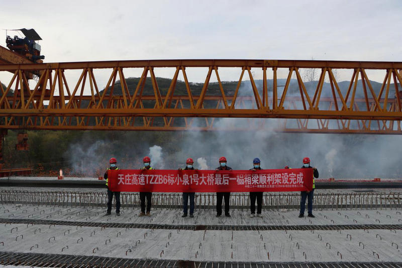 11月3日下午,隨著小泉1號大橋右幅26-3最后一榀箱梁安全、準(zhǔn)確、平穩(wěn)地落在橋梁支座上,標(biāo)志著中鐵二十一局四公司天莊高速公路項目小泉1號大橋箱梁全部架設(shè)完成,為天莊高速項目如期建成奠定了堅實的基礎(chǔ)。