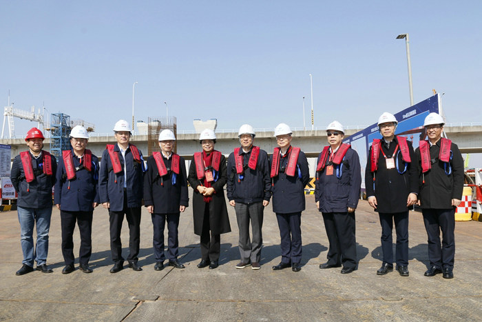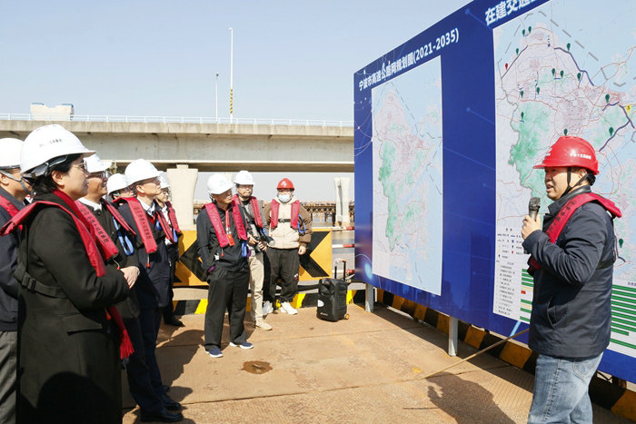 寧波市人大常委會副秘書長兼辦公廳主任伊敏芳、社會建設(shè)工委主任盧葉挺,市人大城建環(huán)資委委員、市城建設(shè)計(jì)研究院有限公司董事長、總經(jīng)理王紀(jì)躍,市人大常委會城建環(huán)資工委副主任李紅國,市人大代表、浙江華展工程研究設(shè)計(jì)院有限公司黨委書記、總經(jīng)理何國平,寧波市政府副秘書長、辦公廳二級巡視員余偉平,寧波市交通局局長胡海達(dá)、市住建局局長陳壽旦,寧波軌道交通集團(tuán)黨委書記、董事長楊蔚,寧波交投控股集團(tuán)黨委書記、董事長張春波,以及杭甬復(fù)線寧波一期高速公路有限公司黨委書記兼董事長葉楠、常務(wù)副總經(jīng)理?xiàng)罟?、副總?jīng)理?xiàng)畛砂?、監(jiān)理公司總監(jiān)章華鋒、中鐵十五局集團(tuán)二公司副總工程師兼杭甬項(xiàng)目 負(fù)責(zé)人黃偉等陪同。