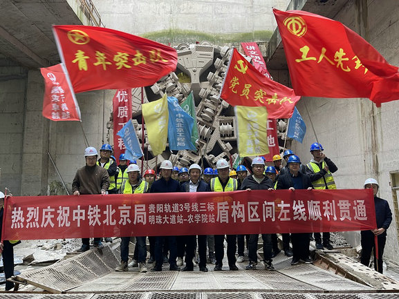 11月10日,“黔進(jìn)12號”刀盤徐徐旋轉(zhuǎn)破門而出,提前20天成功打通貴陽地鐵3號線明珠大道站-農(nóng)學(xué)院站區(qū)間左線隧道。至此,中鐵北京工程局貴陽軌道3號線明珠大道站-農(nóng)學(xué)院站盾構(gòu)區(qū)間雙線隧道順利貫通!