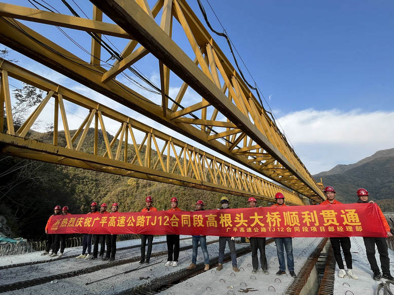 11月15日15時(shí),伴隨著最后一片T梁順利安裝到位,北新路橋集團(tuán)長(zhǎng)沙分公司廣平高速公路TJ12合同段項(xiàng)目部控制性工程高根頭大橋順利貫通。