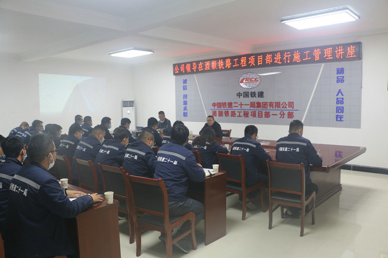 11月23日,中鐵二十一局四公司酒額鐵路工程項目部召開了施工管理專題講座,公司副總經(jīng)理祁濤參加會議并進行了施工管理的講解。會議由項目經(jīng)理主持,項目部全體人員、各工區(qū)領(lǐng)導(dǎo)班子成員及部門負(fù)責(zé)人、全體技術(shù)人員共計32人聆聽了講解。