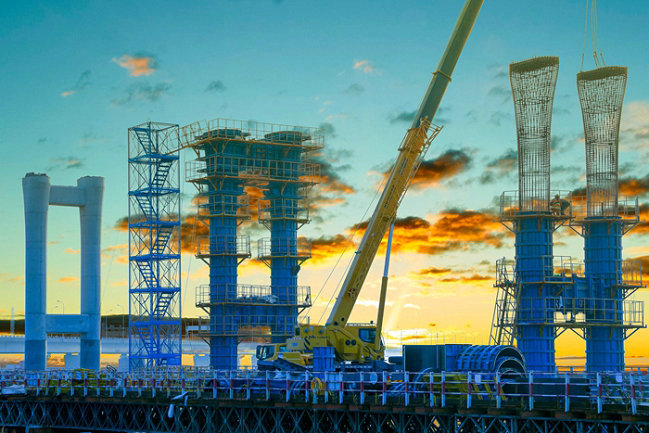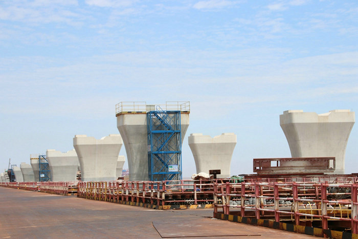 杭甬項目濱海高架和濱?;ネüこ淌呛I献鳂I(yè),既有幾層樓高的連續(xù)梁、80多米高的塔吊、20米左右的墩身高空作業(yè),也有焊接牛腿、安裝底板、承臺立模和綁扎鋼筋籠的臨水施工,都有潛在危險。冬季施工,每天施工人員與鋼筋、鋼模、護筒、鋼管、角鋼、鋼板、設(shè)備打交道,在低溫下,這些“鐵家伙”的溫度更低,手觸摸一下十分冰涼。每天兩次潮汐,潮水上漲速度快,幾分鐘時間便漫過承臺,稍不留神,遇上8級以上大風,一個大浪就能把人卷進海里。針對項目冬季安全