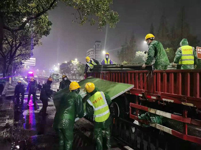 當(dāng)晚6點(diǎn),該項(xiàng)目部接到寧波市鎮(zhèn)海區(qū)防疫辦緊急通知,要求出動(dòng)一支抗疫隊(duì)參加防疫區(qū)周邊隔離圍擋的搭建行動(dòng)。該項(xiàng)目部主管領(lǐng)導(dǎo)立即行動(dòng)起來,在較短的時(shí)間內(nèi)組建了一支由30人參加的抗疫救援隊(duì),冒雨前往鎮(zhèn)海區(qū)隧道北路蛟川社區(qū),緊張地忙碌起來。卸車、用隔離專用板、鋼管等材料搭建圍擋,阻斷行人和車輛,為鎮(zhèn)海區(qū)堅(jiān)決打好新冠疫情防疫戰(zhàn)筑起堅(jiān)固的安全防線。夜晚的氣溫很低,還下著連綿細(xì)雨,志愿者們?cè)陲L(fēng)雨中堅(jiān)守,沒有一個(gè)縮手縮腳,大家按照分工,有的安裝鋼管架,有的卸下車上的一塊塊隔離板立在一面架子上,再用鐵絲綁緊,動(dòng)作有條不紊。從東到西,圍擋在一米一米地向前延伸。從7點(diǎn)開始到凌晨5點(diǎn),經(jīng)過10個(gè)小時(shí)的艱苦奮戰(zhàn),一面長(zhǎng)500米、高2.5米的圍擋聳立在蛟川街道上。天冷、風(fēng)大、雨下個(gè)不停,氣候惡劣,志愿者們心里卻熱乎乎的,在鎮(zhèn)海區(qū)新冠疫情嚴(yán)重的情況下,力所能及地為當(dāng)?shù)乜挂咧槐壑Γ械椒浅8吲d。