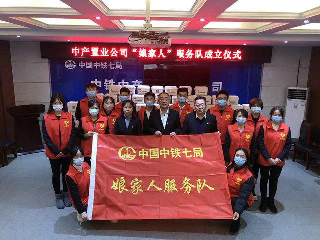 11月29日,在激昂的音樂聲中,當(dāng)黨委書記董事長孟慶方、總經(jīng)理師丹把鮮紅的“娘家人服務(wù)隊(duì)”旗幟鄭重交到兩名隊(duì)長手里時(shí),現(xiàn)場響起了熱烈的掌聲。自此,中鐵七局中產(chǎn)置業(yè)公司“娘家人”服務(wù)隊(duì)正式宣告成立。