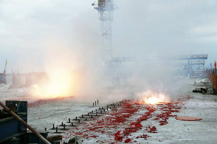 杭甬項目濱海高架橋懸空連續(xù)梁主跨135米,兩端副跨各77.5米,全長290米,橫跨海底直徑4.5米的輸油管道,是濱海高架橋的節(jié)點,也是全線的重難點工程。橋梁起點樁號為K35+240,終點樁號為K35+530,施工難度大、安全風險高,在施工過程中,若鋼模等重物在吊運過程中,不慎從吊鉤上脫落,由幾十米高空墜海砸中輸油管道,必然會造成管壁破裂,原油外泄,使海水出現(xiàn)嚴重污染,后果不堪設想,不敢有絲毫馬虎,要時刻蹦緊安全之弦。出于安全考慮,該項目部請寧波市海事局蛙人摸排原油管道并標出準確位置,在棧橋和連續(xù)梁施工中避免誤踩“雷區(qū)”。同時組織技術人員熟悉圖紙、反復調研論證復雜的海底地質,掌握詳實、精確的第一手資料,再由工程部專人編寫施工方案。有關人員不分白晝加班加點奮戰(zhàn)數(shù)日,長達169頁的《濱海高架橋連續(xù)梁施工方案》初稿出籠,然后召集“智囊團”成員討論、修改方案,后經專家組審定,正式組織實施。