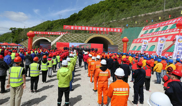 圖為各級領(lǐng)導(dǎo)參加關(guān)山隧道貫通典禮