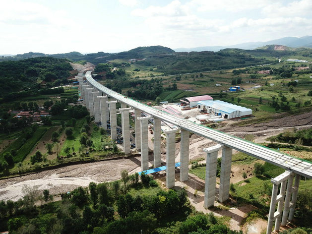 圖為壯觀的大橋施工場景???????為了把平天高速公路建設(shè)成品質(zhì)路、環(huán)保路、致富路,項目部在質(zhì)量管理上始終不遺余力,在制梁場采用先進(jìn)的智能張拉、智能壓漿、自動噴淋養(yǎng)生技術(shù),提升箱梁質(zhì)量,并對每一片預(yù)制梁進(jìn)行二維碼信息化管理,實現(xiàn)了質(zhì)量追溯。項目部還特別為預(yù)制箱梁養(yǎng)護(hù)專門設(shè)置了蒸養(yǎng)設(shè)備。項目部總工程師柳吉煥表示,由于當(dāng)?shù)貢円箿夭畲螅瓴捎谜羝B(yǎng)生,即使冬季戶外零下十幾度也能保證暖棚內(nèi)30度以上的溫度,有效的保證了箱梁砼實體強度。