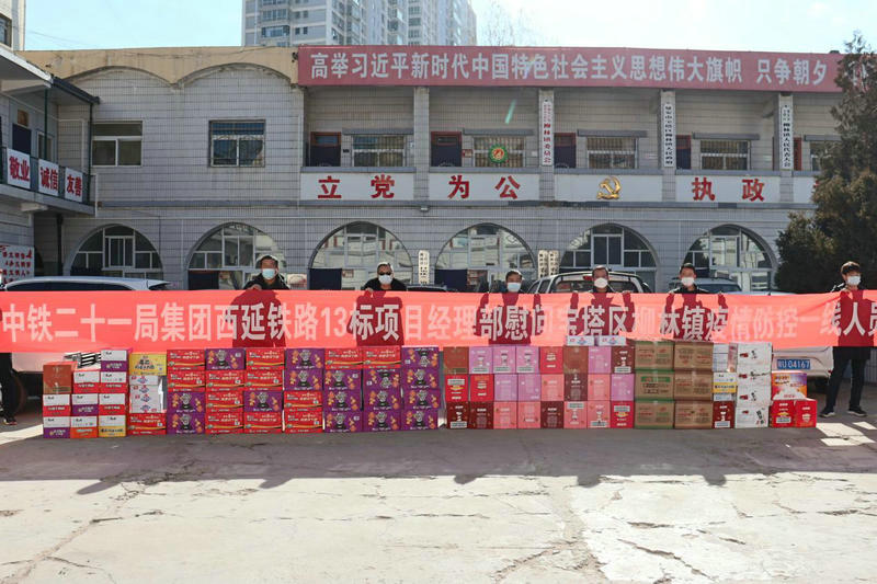 12月30日,中鐵二十一局西延鐵路項目部到柳林鎮(zhèn)政府慰問一線疫情防控工作人員,給一線疫情防控工作人員送去了方便面、礦泉水、奶茶等100多箱日常用品,向堅守“陣地”的柳林鎮(zhèn)防疫工作人員表示親切的慰問和崇高的敬意。