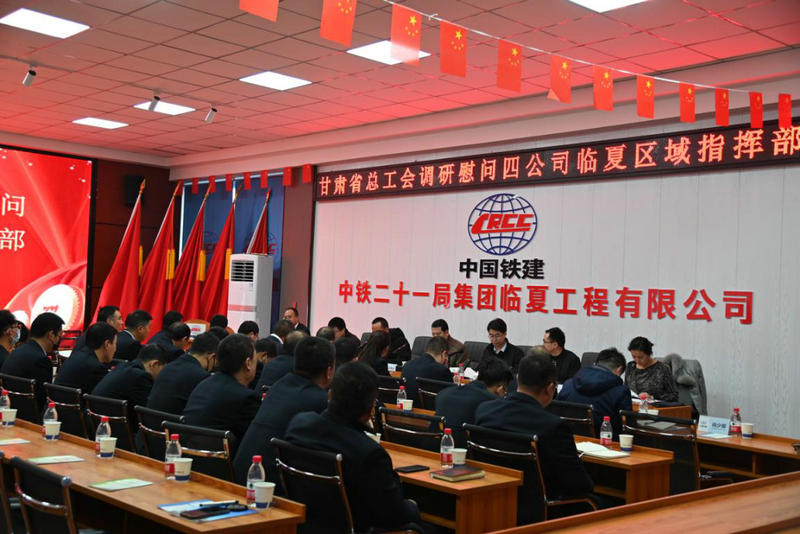 12月30日下午,甘肅省總工會(huì)黨組成員、經(jīng)審會(huì)主任馮繼波,中鐵二十一局黨委副書(shū)記、工會(huì)主席田愛(ài)平一行到四公司臨夏區(qū)域指揮部調(diào)研慰問(wèn)并召開(kāi)座談會(huì)。集團(tuán)公司工會(huì)工作部、四公司臨夏區(qū)域指揮部及所屬各項(xiàng)目相關(guān)負(fù)責(zé)同志參加活動(dòng)。