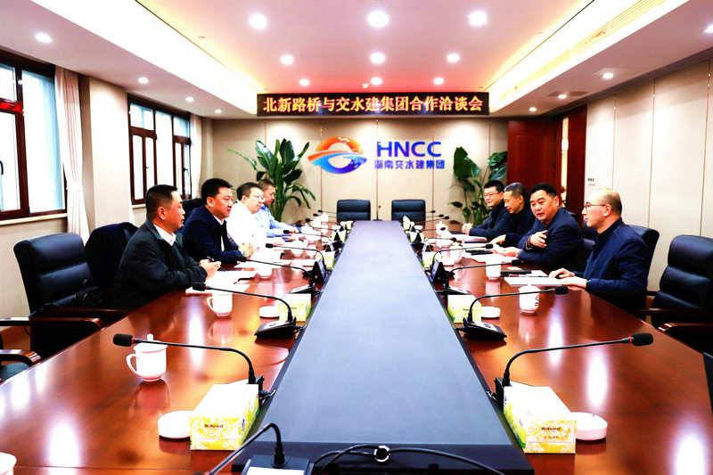 長(zhǎng)沙訊(通訊員易婷)1月7日,北新路橋集團(tuán)黨委副書記、副董事長(zhǎng)、總經(jīng)理朱長(zhǎng)江一行,趕赴湖南交水建集團(tuán)開(kāi)展合作洽談。雙方就加強(qiáng)投資項(xiàng)目合作、推動(dòng)共同發(fā)展進(jìn)行深入交流。