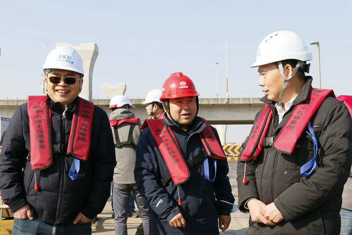 下午1點半,陳繼禹總經(jīng)理驅(qū)車來到規(guī)模很大的杭甬復線濱?;ネ⒔皇┕がF(xiàn)場,查看了樁基、承臺、墩柱等建設情況。公司副總經(jīng)理兼杭甬項目負責人黃偉匯報了濱海高架主體工程完美收官、連續(xù)梁邊跨最后一節(jié)段即將完工,以及濱海互通G匝道橋架梁、施工安全質(zhì)量、完成承臺和墩身數(shù)量等情況。目前,濱?;ネㄟM展順利,從樁基到上部橋墩,均按照施工計劃有步驟地穩(wěn)步推進。聽完黃偉的匯報,陳繼禹很高興。他說:“中鐵十五局有較強的履約能力,我對S3合同段的安全質(zhì)量和進度與環(huán)保是滿意的。”針對項目施工情況,他提出三點要求:一是年關將至,安全工作一定要高度重視,高墩、樁基施工,要做好安全防護,不能有絲毫松懈,時刻繃緊安全之弦,發(fā)生一起事故,造成的經(jīng)濟和信譽損失不可估量,建筑行業(yè)這方面的教訓深刻,要汲取,各級管理人員要加強監(jiān)督、檢查,寧當惡人不當罪人。只要責任到位、措施到位、認識到位,施工生產(chǎn)就會平平安安。二是抓好現(xiàn)場管理,打造標準化工地,保持和發(fā)揚既有成績,克服工作中存在的不足,備用、待用材料堆碼整齊,棧橋干干凈凈,誰看了都舒服。三是做好疫情防控工作,寧波的疫情尚未消除,全國的疫情形勢不容樂觀,要管好隊伍,盡量減少人員外出,不要到人流集中的地方,鼓勵員工春節(jié)就地過年。