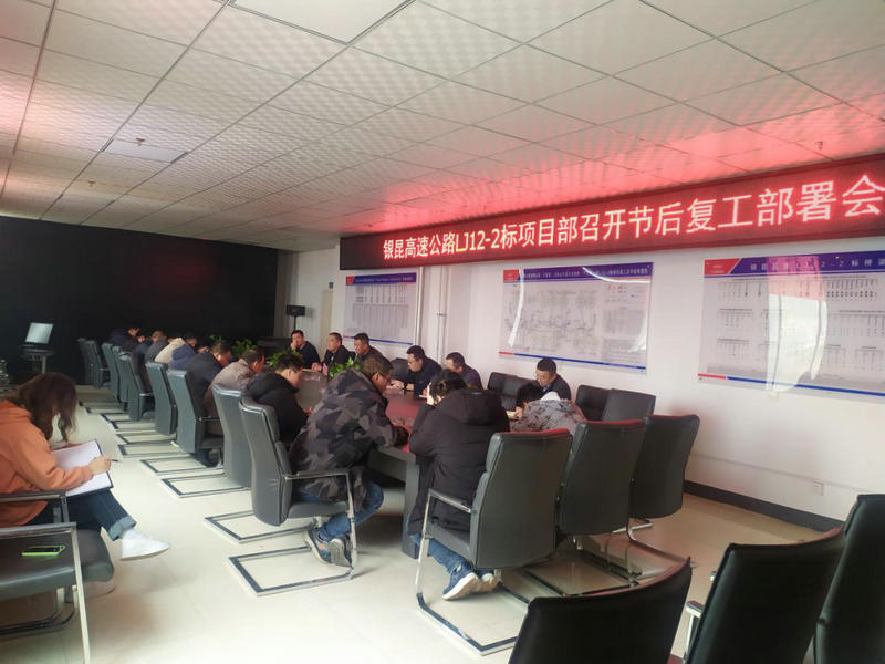 為加快項(xiàng)目施工生產(chǎn)進(jìn)度,迅速做好復(fù)工前準(zhǔn)備工作,2月12日,中鐵二十一局銀昆高速公路LJ12-2標(biāo)項(xiàng)目經(jīng)理部召開節(jié)后復(fù)工部署會(huì),項(xiàng)目班子成員、各部門負(fù)責(zé)人、工區(qū)經(jīng)理、技術(shù)主管、實(shí)驗(yàn)室負(fù)責(zé)人及拌合站站長(zhǎng)參加會(huì)議。