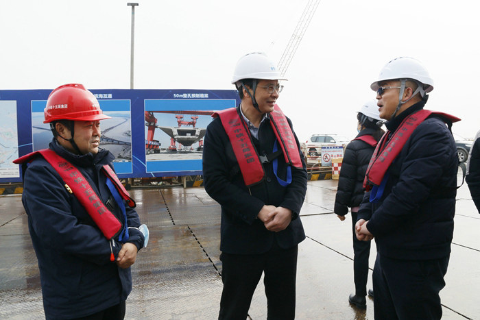 上午10點(diǎn),顧偉軍來到位于金堂大橋北側(cè)的杭甬項(xiàng)目濱?;ネ⒔粯屑~中心,詳細(xì)聽取了公司副總經(jīng)理兼杭甬項(xiàng)目負(fù)責(zé)人黃偉關(guān)于復(fù)工復(fù)產(chǎn)、鋼箱梁架設(shè)、工程進(jìn)展、隊(duì)伍和物資設(shè)備管理、工期節(jié)點(diǎn)、新冠疫情防控等情況。顧偉軍說:“中鐵十五局是央企,有豐富的施工管理經(jīng)驗(yàn),從目前來看,這個(gè)標(biāo)段干得不錯(cuò),我們交通局與你們十五局目標(biāo)一致,工程干得漂亮,大家都高興。”他結(jié)合從業(yè)主、監(jiān)理單位了解和現(xiàn)場查看的情況,提出三點(diǎn)要求:一是要配置好各種資源,掀起大干高潮,要統(tǒng)籌兼顧進(jìn)度、質(zhì)量、安全、環(huán)保,并要抓好制度落實(shí)和管理人員責(zé)任制落實(shí),有困難大家解決,齊心協(xié)力完成一季度任務(wù)目標(biāo)。二是安全工作要做到警鐘長鳴,教育引導(dǎo)與獎(jiǎng)罰相結(jié)合,措施要跟上,要有危機(jī)感,這么大的工程哪能沒隱患?要早發(fā)現(xiàn)早排除,才能保證施工安全。你們連續(xù)兩年獲得浙江省和寧波市的平安工地示范合同段,成績只能說明過去,要再接再厲,確保一方平安。三是浙江省的新冠疫情反復(fù)無常,寧波沒有疫情,但不可掉以輕心,要做好全員的防控工作,從小處著手,從細(xì)節(jié)上加以重視,不能有絲毫麻痹和松懈情緒。