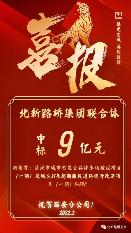 近日,北新路橋集團(tuán)收到濟(jì)源市城投建設(shè)發(fā)展有限公司發(fā)來(lái)中標(biāo)通知書,成功中標(biāo)河南省濟(jì)源市城市智能公共停車場(chǎng)建設(shè)項(xiàng)目(一期)及城區(qū)31條超期服役道路提升改造項(xiàng)目(一期),中標(biāo)金額為9億元,施工工期360日歷天。