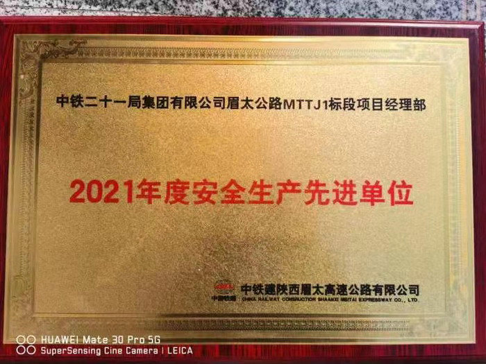 圖為眉太1標(biāo)項(xiàng)目部獲業(yè)主安全生產(chǎn)先進(jìn)單位