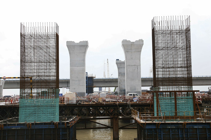 該項(xiàng)目部領(lǐng)導(dǎo)清醒地認(rèn)識到,濱海互通最大的風(fēng)險(xiǎn)是安全。濱?;ネ▋?nèi)外環(huán)8座匝道橋橋墩均為25米左右的高墩,緊鄰車輛川流不息的金塘大橋兩側(cè)橋面防護(hù)欄的距離最窄處僅有幾米,樁基作業(yè)和橋墩施工,有潛在的不安全隱患,鋼護(hù)筒、鋼筋籠就位都需要幾十米的長臂履帶吊操作,安全風(fēng)險(xiǎn)很高,大臂在旋轉(zhuǎn)過程中,若角度控制不好,容易觸碰到橋面上正在運(yùn)行的車倆,后果不堪設(shè)想。為此,該項(xiàng)目部對濱?;ネ⒔粯蚨帐┕ぷ隽税踩L(fēng)險(xiǎn)預(yù)測,根據(jù)預(yù)測結(jié)果制定了具體的實(shí)施方案。在樁基、承臺(tái)、墩身施工中,由經(jīng)驗(yàn)豐富的專職安全員現(xiàn)場指揮履帶吊作業(yè),駕駛員必須服從安全員指揮,不得隨意變換角度。同時(shí)規(guī)定駕駛員晚上不得熬夜、睡眠要充足、作業(yè)時(shí)間保持良好的精神狀態(tài),精力要高度集中,思想不得“開小差”,按照操作規(guī)范起吊、降落鋼護(hù)筒、墊板、鋼筋籠、鋼模板。其次,由安全總監(jiān)和一名副經(jīng)理在施工區(qū)域巡回檢查、監(jiān)督,加強(qiáng)防范,發(fā)現(xiàn)不安全苗頭馬上叫停整改,排除隱患后,再進(jìn)行施工。