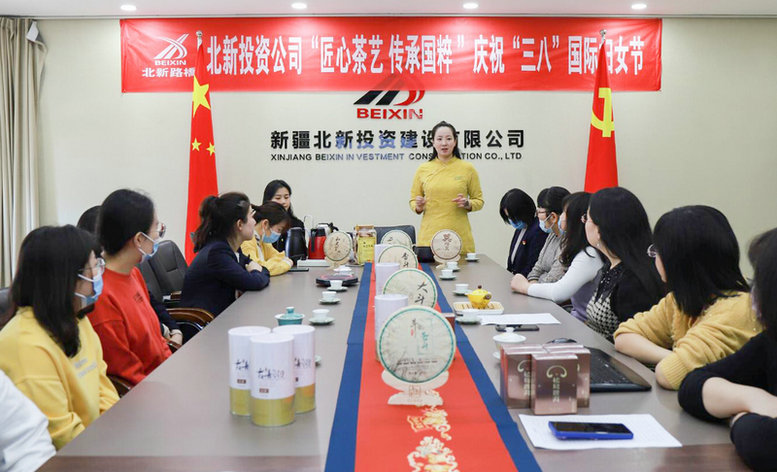 烏魯木齊訊(通訊員 趙樺 雒煥鼎)3月4日上午,北新投資公司機(jī)關(guān)活動(dòng)室里彌漫著中國(guó)茶的芳香,一場(chǎng)“匠心茶藝 傳承國(guó)粹”慶祝第112個(gè)“三八”國(guó)際婦女節(jié)活動(dòng)在一片歡聲笑語(yǔ)中進(jìn)行著。